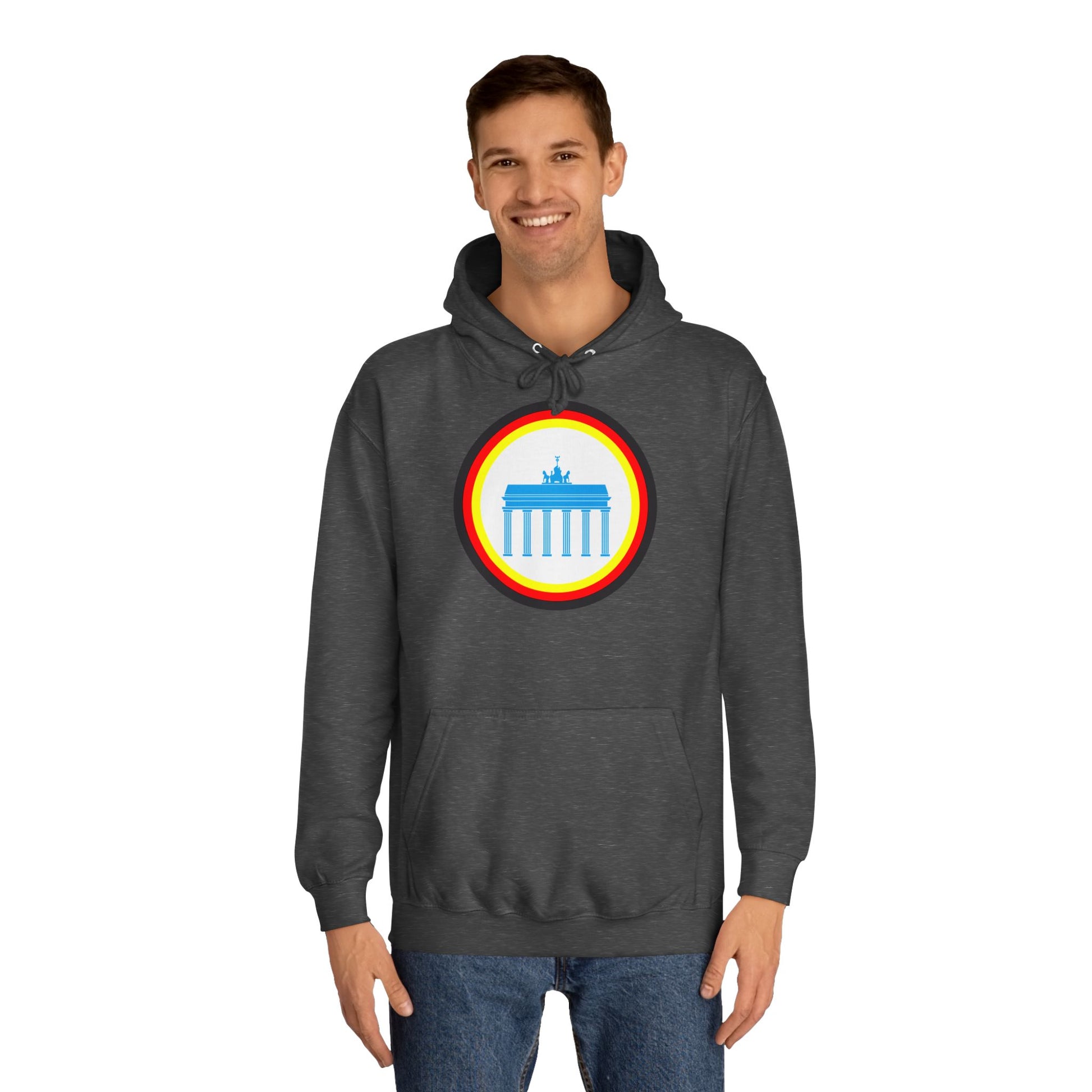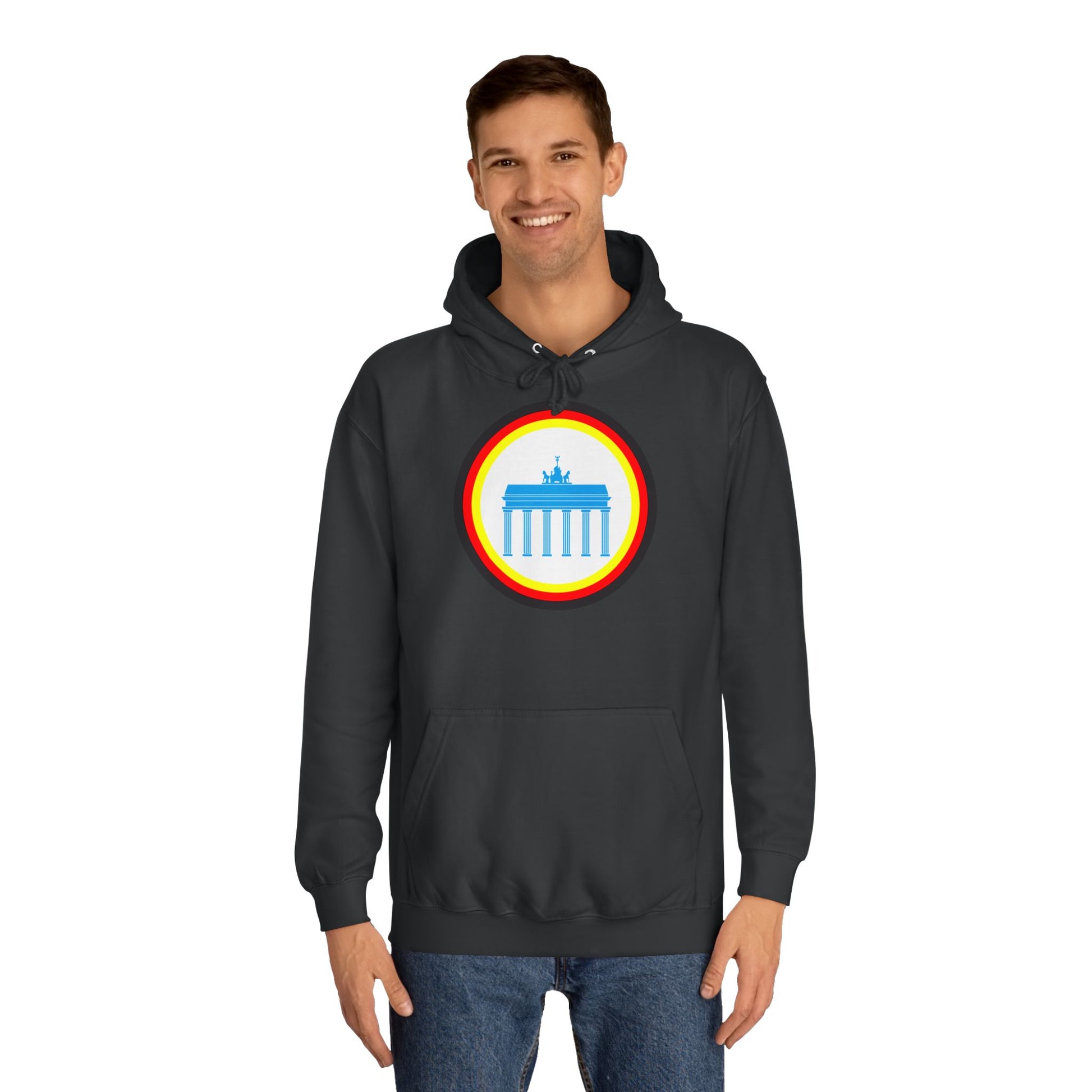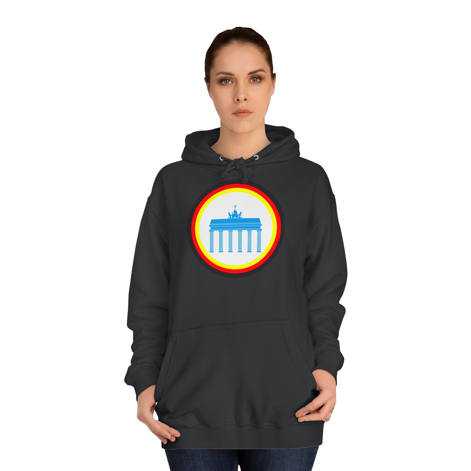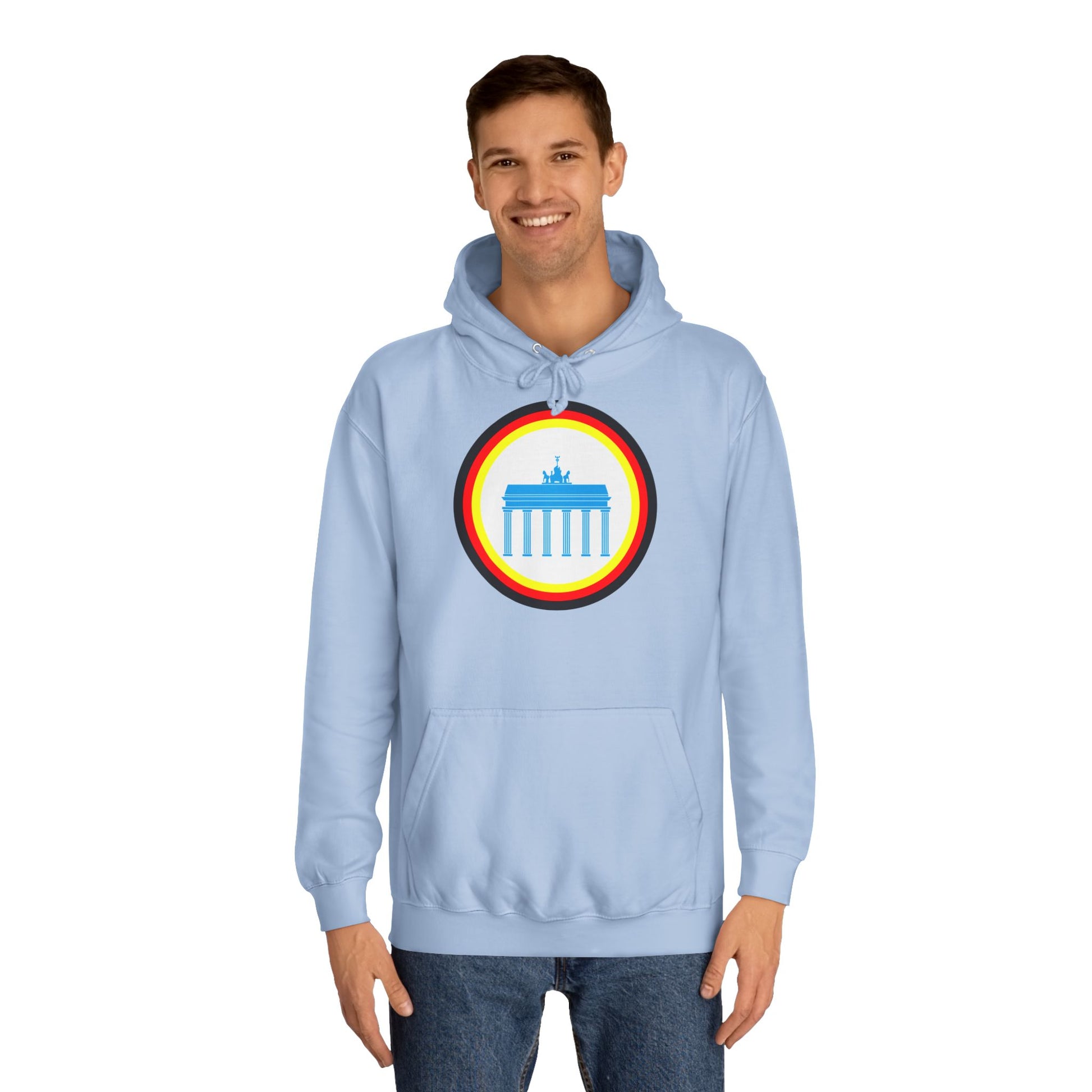 Dieser unisex College Hoodie zeigt das ikonische Brandenburger Tor in Berlin und verbindet kulturelles Erbe mit modernem Design. Hergestellt aus hochwertigen Materialien bietet er hohen Tragekomfort und Langlebigkeit. Der Schnitt ist vielseitig und passt sich verschiedenen Körpertypen an, ideal für den Alltag oder besondere Anlässe. Perfekt für alle, die ihre Verbundenheit zu Berlin stilvoll zum Ausdruck bringen möchten.